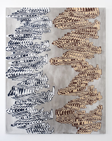 James Siena (born in 1957, Oceanside, California) is a pivotal artist in the New York art scene, particularly known for his creative process based on self-imposed parameters that he terms visual algorithms. By establishing a base unit that he infinitely and obsessively repeats, Siena takes possession of the surface plane in order to focus on complex geometric and abstract forms. James Siena’s work explores numerous mediums, including lithography, engraves, drawing, and paintings of enamel on aluminum, a technique that characterizes his work since the 1990s. The rigorous mathematical process adopted by James Siena and the industrial technique of enamel on aluminum obscures neither the artist’s presence of hand nor the fragility of his lightest touch, which he applies and endlessly repeats. The motion Siena creates, at once rational and poetic, confront us with an optical riddle that mixes chance and order, where the leitmotiv distinguishes itself in a group that at first glance appeared uniform. The little spaces, similar to fetishes, totems, or icons, concentrate a unique and hypnotic energy that invites the onlooker to choose his own path between the lines and to give himself over to the metaphysical experience.