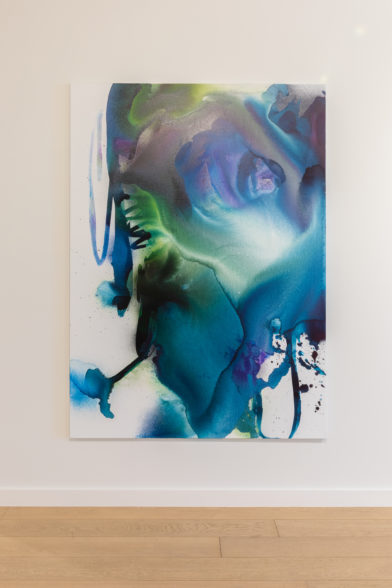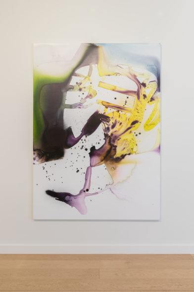 Max Frintrop’s painting is determined by the act of painting – where the act of painting becomes another way of thinking. Frintrop’s standards demand a kind of thinking in complex and abstract emotions, swinging in fields of tension between intuitive pictorial solutions and the process of painting itself. His painting has many roots in abstract expressionism and the informal movement that developed during World War II in Europe and specifically Germany. Hans Hartung is not an irrelevant artist to mention in this context. Like Hartung, Frintrop turns gesture into order, with both artists’ forms fusing into complex felt geometries that create circuits of energy that flow around the picture plane. Lately Frintrop has been pushing the quality of liquidity inherent in his use of ink as his medium of choice, resulting into works that are simultaneously pared down yet more expansive in a pictorial sense. His work is characterized by a wide array of colors where shades of blue often float to the surface. For Frintrop the use of colors as a material is the most affirmative approach available to painting. While mostly known for his large formats of paintings, the exhibition also presents a selection of rarer smaller works on canvas.