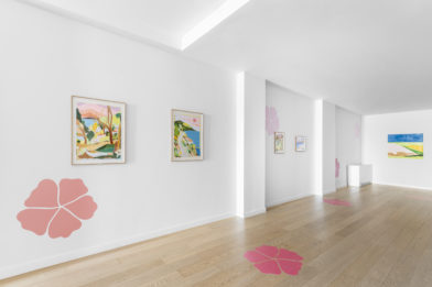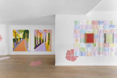 Showcasing a mixed materiality, the works include botanical elements such as sand, lavender, and hibiscus, incorporated for their healing and transformative properties. Stylistically, Perutz borrows widely from multiple historical frameworks simultaneously; referencing pop aesthetics, fauvism, minimalism, as well as traditional outdoor painting.